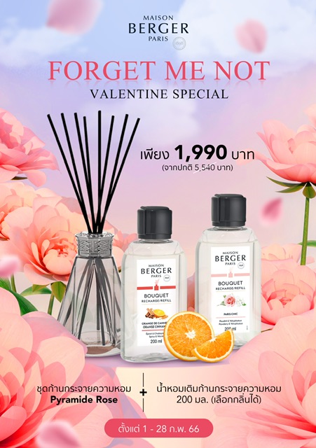 เมซอง แบร์เช่ ปารีส (Maison Berger Paris) ผู้นำเครื่องหอมสำหรับบ้านระดับพรีเมียมจากประเทศฝรั่งเศส สร้างอากาศบริสุทธิ์ให้ทุกมุมในบ้าน ขอร่วมฉลองบรรยากาศความรักที่อบอวลตลอดเดือนกุมภาพันธ์นี้ ด้วยโปรโมชั่นวาเลนไทน์ นำเสนอเซตตะเกียงน้ำหอมสำหรับบ้านรุ่นยอดนิยมที่มาพร้อมน้ำหอมกลิ่นขายดีตลอดกาล มีหลากหลายชุดให้เลือก เหมาะสำหรับมอบเป็นของขวัญให้คนรัก คนรู้ใจ หรือแม้แต่มอบให้ตัวเอง เพื่อให้กลิ่นหอมเคียงคู่ความรักแสนโรแมนติก