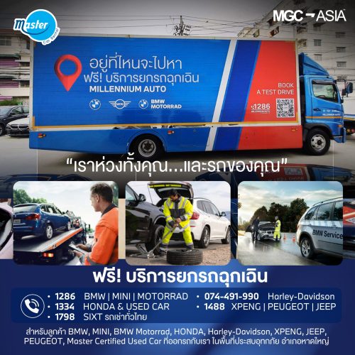 บริการรถยกฉุกเฉิน ‘ฟรี’ สำหรับลูกค้าเจ้าของรถยนต์ BMW, MINI, HONDA, XPENG, PEUGEOT, JEEP, BMW Motorradและ Harley-Davidson ที่ได้รับผลกระทบจากสถานการณ์น้ำท่วมใหญ่ครั้งนี้ โดยมีทีมงานพร้อมประสานงาน และดำเนินการให้ความช่วยเหลือ เพื่อให้รถยนต์ของท่าน เข้าสู่การตรวจสอบและดูแล ภายในศูนย์บริการอย่างถูกต้องตามมาตรฐาน