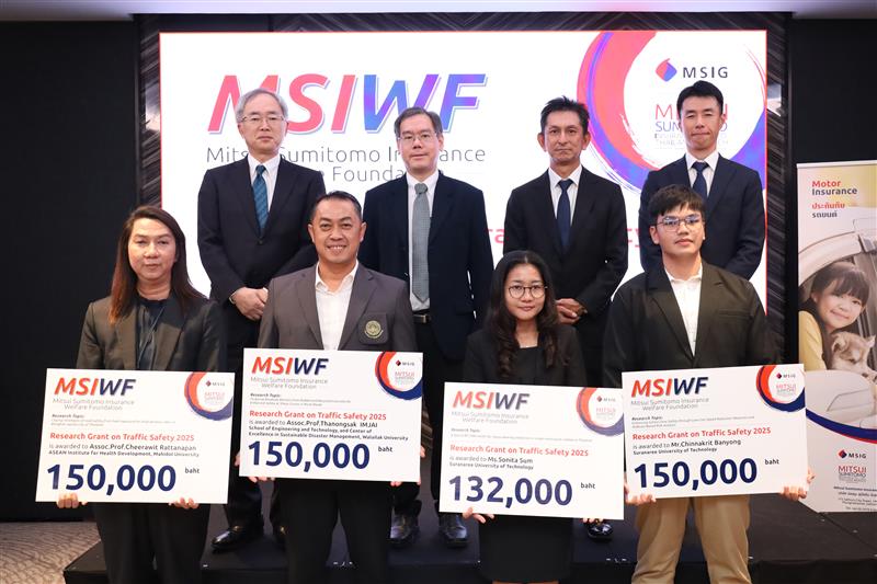 มูลนิธิ มิตซุย สุมิโตโม อินชัวรันซ์ เวลแฟร์ ฟาวเดชั่น และกลุ่มผู้บริหารบริษัท มิตซุย สุมิโตโม อินชัวรันซ์ จำกัด สาขาประเทศไทย ได้จัดงานมอบทุนวิจัยแก่นักวิจัยไทย จำนวน 4 โครงการ เป็นจำนวนเงินรวม 582,000 บาท เพื่อสนับสนุนการวิจัยเชิงวิชาการที่เกี่ยวข้องกับการพัฒนาความปลอดภัยบนท้องถนนของประเทศไทยประจำปี 2568 โดยในงานมีการนำเสนอผลงานของนักวิจัยในปีที่ผ่านมาและส่งมอบทุนวิจัยให้กับนักวิจัยที่ได้รับทุนในปีนี้ โดยพิธีจัดขึ้น ณ ห้องประชุม Ambassador I ชั้น 8 โรงแรม Ascott Embassy Sathorn Bangkok