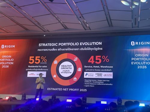 CEO ออริจิ้น พร็อพเพอร์ตี้ “พีระพงศ์ จรูญเอก” ประเมินตลาดอสังหาฯปี 2026 ยังเห็นโอกาสสร้างการเติบโต จัดทัพ 5 ผู้บริหารบริษัทในเครือ ORIGIN GROUP ประกาศกลยุทธ์ ปี 2026 ORIGIN Portfolio Evolution 2026 โอกาสจากโลกที่เปลี่ยน กระจายพอร์ตธุรกิจสร้างการเติบโตที่ยั่งยืน รับมือทุกวัฏจักร วางเป้ายอดขาย 25,000 ล้านบาท และรายได้รวม 10,000 ล้านบาท พร้อมวางแผนเปิดตัวโครงการมูลค่ารวมทั้งหมด19,400 ล้านบาท ประกอบไปด้วยธุรกิจที่อยู่อาศัย บ้านและคอนโด 6 โครงการ มูลค่ารวม 7,400ล้านบาท ธุรกิจโรงแรม 4 โรงแรม มูลค่ารวม 5,900 ล้านบาท ธุรกิจอาคารสำนักงานและพื้นที่เชิงพาณิชย์ รวม 4 แห่ง มูลค่ารวม 3,100 ล้านบาท*และธุรกิจคลังสินค้าและโรงงานให้เช่าอีก 5 โครงการ กว่า 150,000 ตารางเมตร มูลค่ารวม 3,000 ล้านบาท* มั่นใจผลการดำเนินงานทั้งปีเป็นไปตามกลยุทธ์ที่วางไว้