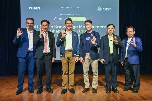 TK Park วันที่ 18 ตุลาคม 2567 – เครือข่ายการจัดการความรู้ประเทศไทย (Thailand Knowledge Management Network – TKMN) โดยสำนักงานบริหารและพัฒนาองค์ความรู้ (องค์การมหาชน) หรือ OKMD สถาบันเพื่อการจัดการความรู้และนวัตกรรมแห่งเอเชียตะวันออกเฉียงใต้ (IKI-SEA), ทริส คอร์ปอเรชั่น (TRIS) และสถาบันคลังสมองของชาติ (KNIT) แถลงข่าวเตรียมจัดงานสัมมนา “การจัดการความรู้ยุคใหม่ด้วยเทคโนโลยีปัญญาประดิษฐ์: ก้าวสู่อนาคต” (AI-Driven Knowledge Management: Shaping the Future) โดยผู้เชี่ยวชาญจากองค์กรจัดการความรู้ชั้นนำของประเทศ ณ TK Park ชั้น 8 เซ็นทรัลเวิลด์ กรุงเทพฯ
