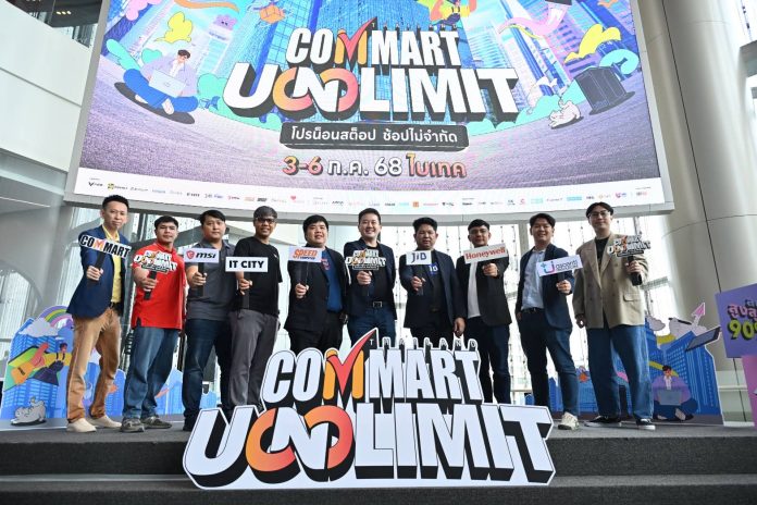 บริษัท เออาร์ไอพี จำกัด (มหาชน) และพันธมิตรแบรนด์และผู้จัดจำหน่ายสินค้าไอที จัดแถลงข่าวความพร้อมการจัดมหกรรมสินค้าไอทีคอมมาร์ต รอบกลางปี 2568 มาในคอนเซ็ปต์ “COMMART UNLIMIT โปรน็อนสต๊อป ช้อปไม่จำกัด” อัปเดตเทคโนโลยี AI Gen ล่าสุด ที่มากับความแรงไปอีกขั้น พร้อมโปรโมชั่นจัดเต็มรองรับคอมใหม่ที่มาพร้อม Windows 11 ลุ้น แลก รับส่วนลดที่หน้างานได้ทุกวัน จัดเต็มครบทุกแบรนด์สินค้าไอทีชั้นนำ อาทิ ACE, Ajazz, AMD, ASUS, AppleSheep, Ascenti, Banana, E-Quip , Bewell, Ergotrend, Epson, iStudio by SPVI, Studio7, IT City, J.I.B, Lenovo, MSI, Secretlab, SPEED Computer, Honeywell และเครดิตบูโร พบกัน 3-6 กรกฎาคม ณ EH 98-99 ศูนย์นิทรรศการและการประชุมไบเทค บางนา ที่เดิม