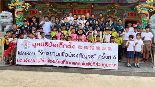 ระหว่างวันที่ 11 พฤศจิกายน 2568 – 22 มกราคม 2569 มูลนิธิป่อเต็กตึ๊ง โดย นายวิเชียร เตชะไพบูลย์ ห่วงใยนักเรียนในพื้นที่ชนบทภาคกลางและภาคใต้ มอบหมายให้ คณะกรรมการ และผู้ช่วยกรรมการมูลนิธิฯ นำโดย นายจารุรัตน์ คุณัตถานนท์ กรรมการและเหรัญญิก นายสุรพงศ์ เสรฐภักดี กรรมการและรองเหรัญญิก นายชาญกิจ วิทยาวรากรณ์ กรรมการ นายชูเดช เตชะไพบูลย์ ผู้ช่วยกรรมการ นำทีมฝ่ายสาธารณภัย และฝ่ายสังคมสงเคราะห์ ลงพื้นที่ภาคกลางและภาคใต้ มอบรถจักรยานพร้อมอุปกรณ์กีฬาและค่าพาหนะให้แก่โรงเรียนชนบทที่ขาดแคลนภาคกลางและภาคใต้ ในโครงการ “จักรยานเพื่อน้องสัญจร” ครั้งที่ 6 รวม 20 จังหวัด 100 โรงเรียน ประกอบด้วย จังหวัดพระนครศรีอยุธยา ลพบุรี ชัยนาท สุพรรณบุรี กาญจนบุรี สมุทรสงคราม ชลบุรี จันทบุรี ตราด สระแก้ว ชุมพร สุราษฎร์ธานี นครศรีธรรมราช พัทลุง ตรัง สตูล สงขลา ปัตตานี ยะลา และนราธิวาส รวมจำนวนจักรยาน 2,000 คัน อุปกรณ์กีฬา จำนวน 100 ชุด และค่าพาหนะแก่โรงเรียนๆ ละ 2,000 บาท รวมงบประมาณดำเนินการทั้งสิ้น 2,854,000 บาท (สองล้านแปดแสนห้าหมื่นสี่พันบาทถ้วน) เพื่ออำนวยความสะดวกแก่นักเรียนที่ประสบปัญหาในการเดินทางมาโรงเรียน รวมถึงเป็นการแบ่งเบาภาระค่าพาหนะแก่ผู้ปกครองได้อีกทางหนึ่ง อีกทั้งยังเสริมสร้างให้นักเรียนได้ออกกำลังกาย เรียนรู้กฎจราจร เรียนรู้การแบ่งปัน และดูแลรักษาสาธารณสมบัติร่วมกัน โดยมี ผู้แทนจากหน่วยงานรัฐเป็นประธานในพิธี พร้อมด้วยเยาวชนและผู้แทนจากสถาบันการศึกษา เป็นตัวแทนรับมอบ และสมาคม/มูลนิธิแต่ละจังหวัด เป็นผู้ประสานงานและร่วมในพิธี รวมถึง อาสาสมัครเฉพาะกิจ และอาสาศิลปินมูลนิธิป่อเต็กตึ๊ง นำโดย นายนเรศ วิทยาวรากรณ์ นายวิวัฒน์ แก้วกำพลกุล และนายวาทิต อิทธิฤทธิ์โสภา (วินน์) ร่วมลงพื้นที่มอบ