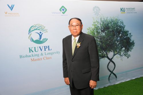 นายพิจิตต์ วิริยะเมตตากุล กรรมการผู้จัดการโรงพยาบาลวิภาวดี กล่าวว่า ปัจจุบันโลกกำลังมุ่งสู่ Preventive Medicine หรือ ‘เวชศาสตร์ป้องกันและฟื้นฟู’ ซึ่งหลักสูตร KUVPL ถือว่าสอดรับกับทิศทางนี้อย่างชัดเจน โดยจุดยืนของโรงพยาบาลวิภาวดีและบริษัทในเครือ คือการ ‘ผสานนวัตกรรม เข้ากับ เทคโนโลยีทางการแพทย์’ เพื่อให้ศาสตร์แห่ง Longevity เป็นสิ่งที่ทุกคนเข้าถึงได้ ขณะเดียวกัน หลักสูตรนี้ยังมุ่งเน้นการสร้างความเข้าใจด้าน Longevity อย่างแท้จริง ไม่ใช่เพียงในเชิงทฤษฎี แต่เป็นองค์ความรู้ที่ผู้เรียนสามารถนำไปประยุกต์ใช้ในชีวิตประจำวันได้อย่างเป็นรูปธรรม ครอบคลุมตั้งแต่การดูแลสุขภาพเชิงลึกด้านโภชนาการ การพักผ่อน การออกกำลังกาย ไปจนถึงการดูแลสุขภาพแบบองค์รวม เพื่อการมีอายุยืนยาวอย่างมีคุณภาพ รวมถึงสามารถส่งต่อองค์ความรู้เหล่านี้ให้ผู้อื่น เพื่อร่วมกันสร้างสังคมสุขภาพที่แข็งแรงและยั่งยืนในระยะยาว”