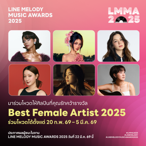 LINE MELODY เตรียมจัดงาน “LINE MELODY MUSIC AWARDS 2025 Presented by SAMSUNG Galaxy” (LMMA2025) งานประกาศรางวัลครั้งยิ่งใหญ่แห่งปี ภายใต้ธีม “RING OUT YOUR VIBES” ขนทัพศิลปิน T-Pop มากมายมาเปิดพื้นที่ให้แฟนเพลงได้ร่วมปลดปล่อยพลัง อารมณ์ และตัวตนผ่านเสียงดนตรี ในบรรยากาศ