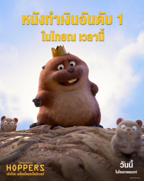 เด้งโดดไปแจกความน่ารักกันแล้วทั่วประเทศ กับภาพยนตร์แอนิเมชันฟอร์มยักษ์ “Disney & Pixar’s Hoppers เด้งโดด เปลี่ยนโหมดเป็นบีเวอร์” ที่มาในธีมถอดสมองย้ายจิตใจไปทำภารกิจสายลับในอาณาจักรสัตว์สุดอลเวง จนเกิดเป็นความมัน ความเพี้ยน ความฮา และความซึ้ง เกินกว่าที่คิด และไม่เพียงเป็นภาพยนตร์แอนิเมชันที่เหมาะกับทุกวัย ทุกเจเนอเรชัน ยังมอบความบันเทิงแบบครบรส ทั้งสนุก ตื่นเต้น อบอุ่นใจ และให้เสียงหัวเราะ เหมือนรวมหนังแอ็กชัน ไซไฟ สายตลก และหนังฟีลกู๊ด ไว้ในเรื่องเดียว แต่กลมกล่อมดูเพลิน จนหลายคนเลยยกให้เป็นหนังดีรับซัมเมอร์นี้ ที่ควรยกก๊วนไปสนุกด้วยกันในโรงภาพยนตร์ การันตีด้วยรายได้เปิดตัวอันดับ 1 Box Office เมืองไทย ขึ้นเป็นแอนิเมชันต้นฉบับที่เปิดตัวสูงที่สุดของพิกซาร์ในไทยนับจาก Coco เมื่อ 9 ปีที่แล้ว แถมยังคว้าเรตติ้ง Rotten Tomatoes สูงถึง 97% ในวันแรกที่เข้าฉาย (5 มีนาคม 2569) พร้อมเสียงรีวิวชื่นชมล้นหลาม