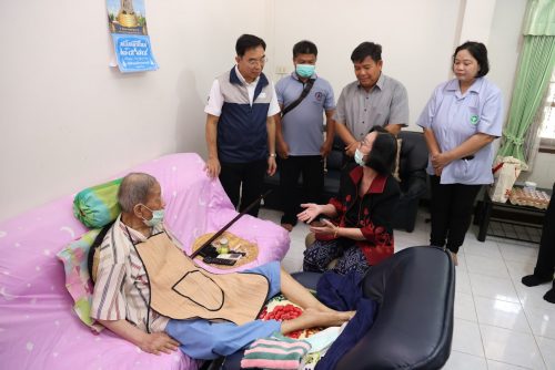 ในช่วงบ่ายคณะฯ ลงเยี่ยมบ้านนายกำชัย สุวรรณมาโจ อายุ 85 ปี ซึ่งเป็นผู้ป่วยที่ได้รับการดูแลจากงบกองทุน LTC ของอบตโนนตาล อยู่บ้านเลขที่ 9 หมู่ที 13 ตำบลโนนตาล อำเภอท่าอุเทน จังหวัดนครพนม ซึ่งเป็น ผู้สูงอายุแขนขาขวาอ่อนแรง ช่วยเหลือตัวเองได้น้อย แขนยกได้ ขาติดท่างอทั้ง 2 ข้าง เดินไม่ได้มา 6 ปี ยังไม่มีสวัดิการผู้พิการ รับยา warfarin จาก รพ.นครพนม (พยาบาลจาก รพ.ท่าอุเทน ญาติ) มีภรรยา ดูแล และมีอาการหมอนรองกระดูกเสื่อม พร้อมกับอาศัยกับบุตร 2 คน คนแรกทำงานที่ ปศุสัตว์ อำเภอท่าอุเทน คนที่ 2 รับจ้างร้านเหล็ก