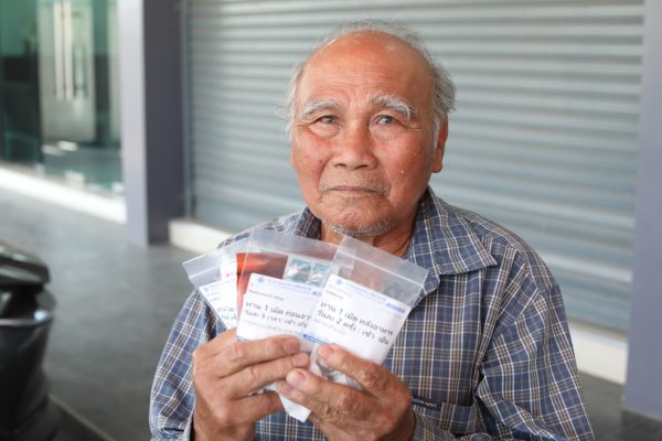 ขณะที่ คณะสปสช.ลงเยี่ยมเพื่อดูความพร้อมของร้านยาที่ร่วมโครงการฯ ลุงหว่าว แก้วพานัง อายุ 76 ปี เกษตรกรทำนา มาใช้บริการเนื่องจากมีอารการปวดที่ต้นคอ เล่าว่า ตนมาใช้สิทธิบัตรทองที่ร้านยาแห่งนี้ครั้งแรก เพราะคนแถวบ้านบอกมาว่าเจ็บป่วยเล็กน้อยมาเอายาที่ร้านยาได้ตนจึงมา ดีใจ ที่สปสช.มีโครงการแบบนี้ช่วยคนยากไร้ได้มาก สะดวก เร็ว ไม่ต้องเสียเวลาไปรพ. เพียงยื่นบัตรประชาชนให้ร้านตรวจสิทธิ์และถามอาการก็ได้ยามากินและไม่ต้องเสียเงินด้วย
