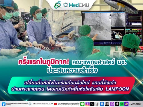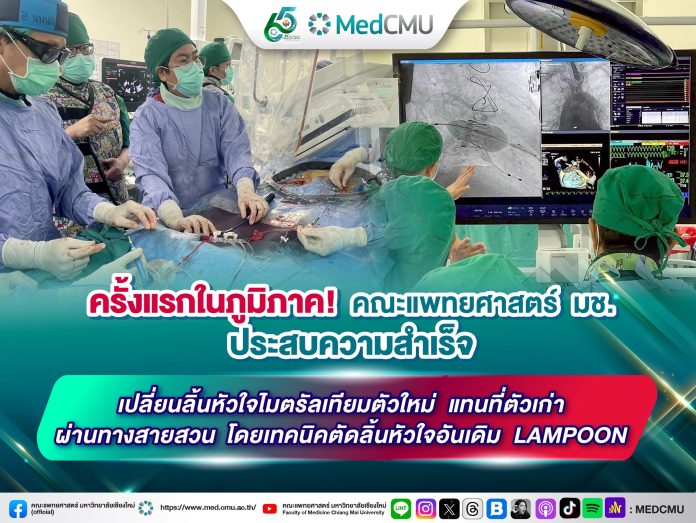 คณะแพทยศาสตร์ มหาวิทยาลัยเชียงใหม่ ประสบความสำเร็จในการรักษาผู้ป่วยหญิงไทย วัย 83 ปี ด้วยเทคนิคการเปลี่ยนลิ้นหัวใจไมตรัลเทียมตัวใหม่ แทนที่ตัวเก่าที่เสื่อมสภาพ ผ่านทางสายสวน โดยเทคนิคการตัดลิ้นหัวใจอันเดิม (LAMPOON – Laceration of the Anterior Mitral Leaflet to Prevent Outflow Obstruction) ถือเป็นรายแรกในระดับภูมิภาคของประเทศไทย ที่มีการทำหัตถการดังกล่าว และเป็นความก้าวหน้าสำคัญในการดูแลผู้ป่วยโรคหัวใจซับซ้อน