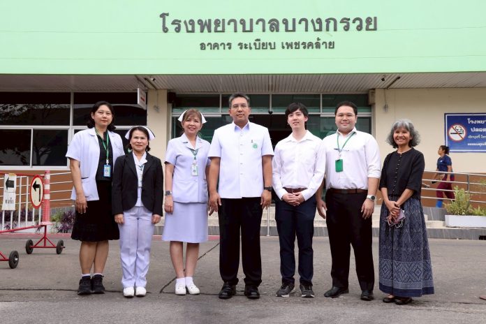 นายแพทย์กวิตม์ ซื่อมั่น รองนายแพทย์สาธารณสุขจังหวัดนนทบุรี และผู้อำนวยการโรงพยาบาลบางกรวย พร้อม นางสุวรรณี ศรีปราชญ์ ผู้อำนวยการกลุ่ม สปสช.เขต 4 สระบุรี นำคณะเยี่ยมชมการให้บริการผู้ป่วยคนพิการ กรณีขอรับขาเทียม ที่โรงพยาบาลบางกรวย จ.นนทบุรี ซึ่งมีการให้บริการเครื่องช่วยความพิการ กายอุปกรณ์เสริม และ กายอุปกรณ์เทียม แก่ ผู้สูงอายุ กลุ่มเปราะบาง และประชาชนทั่วไป ที่ต้องการการรักษาและฟื้นฟู เพื่อรองรับสังคมสูงวัย