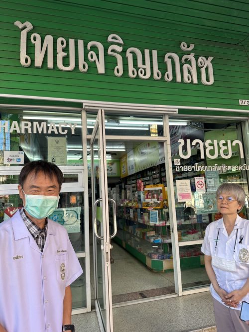จากนั้นคณะได้เยี่ยมและพูดคุยกับร้านยา2แห่ง 1. ร้านยา ห้องยา9 มีภญ.วริศรา ชัยชนะทรัพย์ เป็นเจ้าของ และ2. ร้านยาไทยเจริญเภสัช มี ภญ.กรองทอง กันต์พิทยา เป็นเจ้าของ