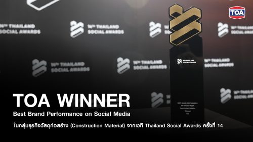 TOA ตอกย้ำเบอร์ 1 คว้ารางวัลชนะเลิศ “Best Brand Performance on Social Media” ในกลุ่มธุรกิจวัสดุก่อสร้าง จากเวที Thailand Social Awards ครั้งที่ 14