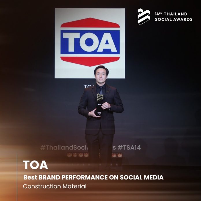 TOA ตอกย้ำเบอร์ 1 คว้ารางวัลชนะเลิศ “Best Brand Performance on Social Media” ในกลุ่มธุรกิจวัสดุก่อสร้าง จากเวที Thailand Social Awards ครั้งที่ 14