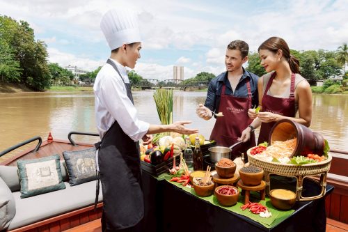 อนันตรา เชียงใหม่ รีสอร์ท เชิญชวนแขกผู้มาเยือนออกเดินทางสู่เส้นทางรสชาติแบบใหม่ ผสมผสานคลาสทำอาหารไทย Spice Spoons เข้ากับการล่องเรือ “น้ำจิต” ในแม่น้ำปิง แขกจะได้เรียนรู้การทำอาหารไทยจานโปรดและอาหารเหนือยอดนิยมระหว่างล่องเรือชมวิวริมน้ำของเมืองเชียงใหม่