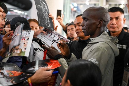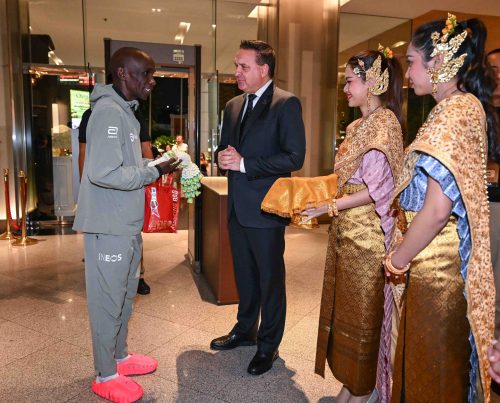 กรุงเทพฯ ๒๖ พฤศจิกายน ๒๕๖๘ การเดินทางมาถึงประเทศไทยของ เอเลียด คิปโชเก้ ตำนานนักวิ่งมาราธอนชาวเคนยา เพื่อเข้าร่วมการแข่งขันวิ่งมาราธอนในเมืองหลวง (World Capital Marathon Series) รายการอะเมซิ่งไทยแลนด์มาราธอนแบงค็อก 2025 พรีเซ็นต์บาย โตโยต้า ครั้งที่ ๘ ประจำปี ๒๕๖๘ พร้อมชื่นชมการต้อนรับของคนไทยที่แสนอบอุ่นประทับใจเต็มไปด้วยรอยยิ้ม ดีใจที่ได้ร่วมทำกิจกรรมต่างๆ ในฐานะทูตทางด้านการท่องเที่ยว กีฬา และ วัฒนธรรมของรัฐบาลไทยอีกครั้งในปีนี้