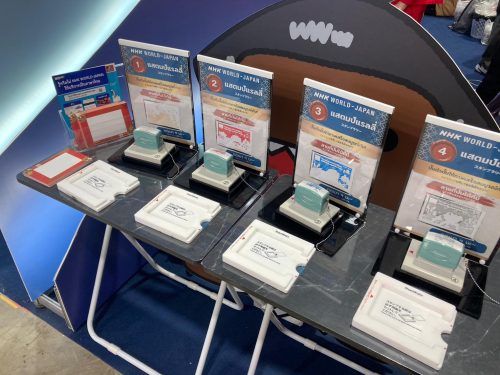 ภายในบูธ NHK WORLD-JAPAN ผู้เข้าชมสามารถสัมผัสบริการและคอนเทนต์ที่รับชมได้ทั่วโลก ไม่จำกัดเฉพาะในประเทศไทย พร้อมกิจกรรมที่ช่วยเสริมสร้างความเข้าใจเกี่ยวกับญี่ปุ่นในด้านการท่องเที่ยว วัฒนธรรม อาหาร การใช้ชีวิต รวมถึงการเตรียมความพร้อมก่อนเดินทาง โดยบูธดังกล่าวเปิดให้เข้าร่วมกิจกรรมตลอดระยะเวลา 4 วันของงาน