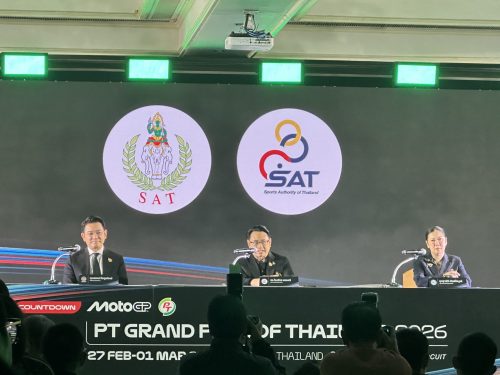 กระทรวงการท่องเที่ยวและกีฬา โดยการกีฬาแห่งประเทศไทย ผนึกกำลังพันธมิตรภาครัฐและเอกชน แถลงข่าวนับถอยหลังการแข่งขันรถจักรยานยนต์ชิงแชมป์โลก “โมโตจีพี” ประจำปี 2569 รายการ “พีที กรังด์ปรีซ์ ออฟ ไทยแลนด์ 2026” (PT Grand Prix of Thailand 2026) ซึ่งประเทศไทยยังคงได้รับความไว้วางใจให้เป็นเจ้าภาพสนามเปิดฤดูกาลต่อเนื่องเป็นปีที่ 2 พร้อมรับหน้าที่สนามทดสอบก่อนเปิดฤดูกาล (Pre-Season Test) ระหว่างวันที่ 21–22 ก.พ. และการแข่งขันสนามแรกของฤดูกาล ระหว่างวันที่ 27 ก.พ. – 1 มี.ค. 2569 ที่ สนามช้าง อินเตอร์เนชั่นแนล เซอร์กิต จังหวัดบุรีรัมย์ ตอกย้ำศักยภาพไทยในเวทีโลก พร้อมสร้างแรงกระเพื่อมทางเศรษฐกิจ การท่องเที่ยวต่อเนื่องทั่วประเทศ และประสบการณ์ระดับโลกให้แฟนมอเตอร์สปอร์ต พร้อมไฮไลต์สำคัญกับการเผยโฉม ‘โทรฟี่โมโตจีพี สนามประเทศไทย” งานออกแบบเชิงสัญลักษณ์ระดับโลก เปรียบเสมือนคบเพลิงแห่งการเปิดศักราชใหม่ ถ่ายทอดบทบาทประเทศไทยในฐานะสนามเปิดฤดูกาล ผสานอัตลักษณ์ไทยผ่าน Track Layout สนามช้างฯ สีธงชาติไทย และผ้าลายพระราชทาน “สิริวชิราภรณ์” สะท้อนพลังวัฒนธรรมท้องถิ่นที่หลอมรวมกับเวที World Grand Prix อย่างสง่างาม